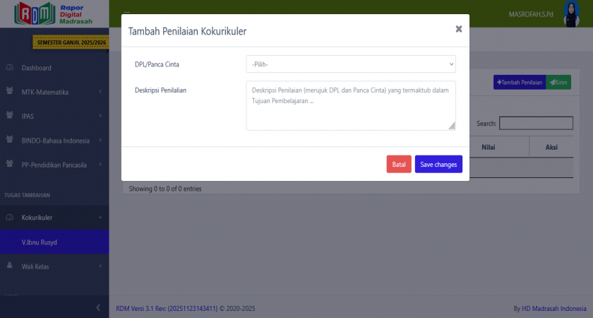 Agar Program Makan Bergizi Gratis (MBG) dapat terdokumentasi dengan baik sebagai kegiatan kokurikuler, madrasah perlu menyiapkan indikator, tujuan, dan deskripsi penilaian yang jelas. Rancangan ini penting karena menjadi dasar input dalam Rapor Digital Madrasah (RDM), khususnya pada menu Kokurikuler.