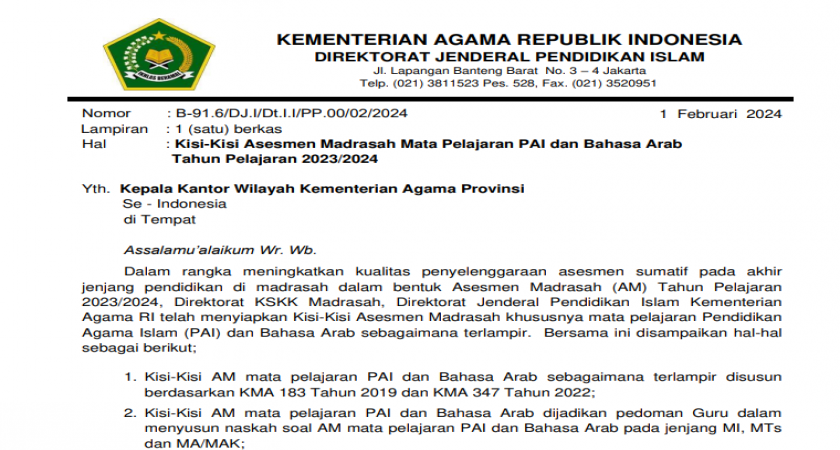 KISI-KISI ASESMEN MADRASAH TAHUN 2024